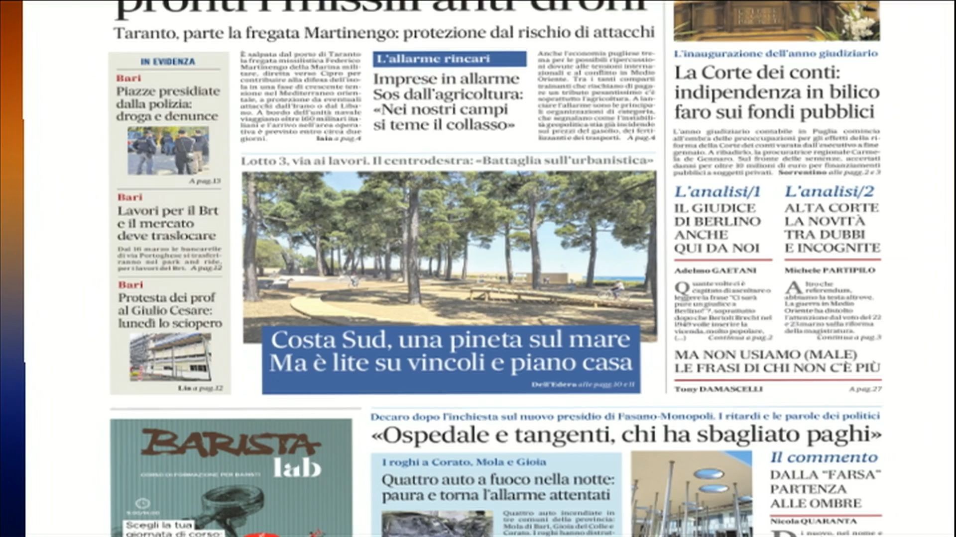 Ogni giorno gli approfondimenti dalle prime pagine dei principali quotidiani nazionali e pugliesi.